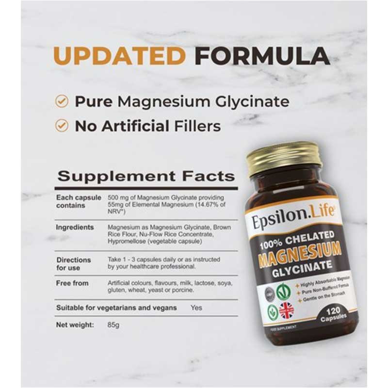 Epsilon.Life – Magnesium Glycinate Chelated 120 capsules