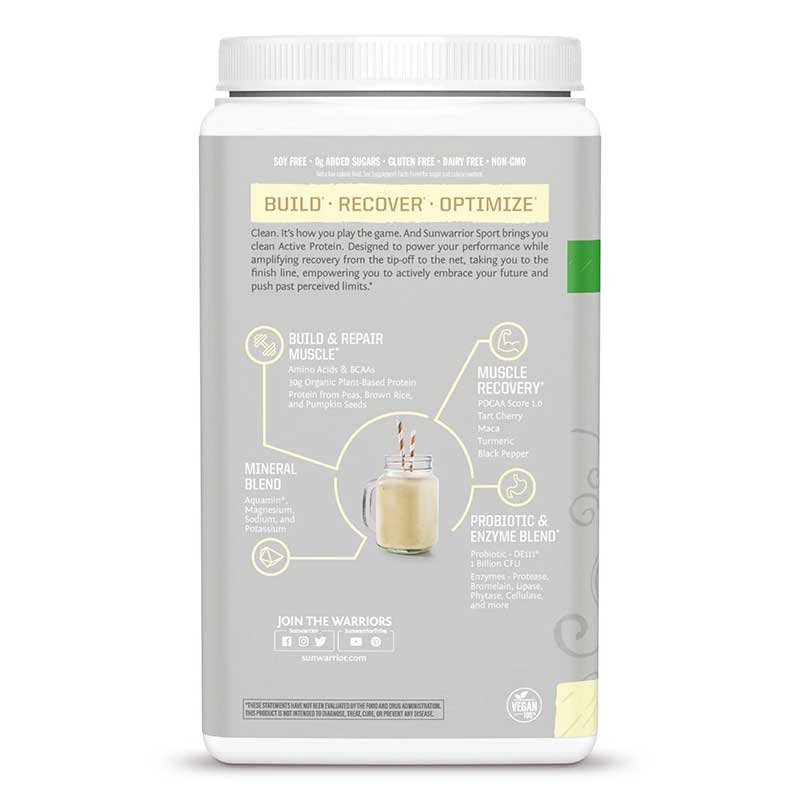 And Sunwarrior Sport brings you clean Active Protein. Designed to power your performance while amplifying recovery from the tip-off to the net, taking you to the finish line, empowering you to actively embrace your future and push past perceived limits. So build with 30g protein, recover with 6g BCAAs, and replenish your minerals with our earth-based mineral replenishment matrix. Add to that probiotics DE111, which may reduce systemic low-grade inflammation and provide digestive health, and you have a protein that performs as hard and with the same intensity as you.