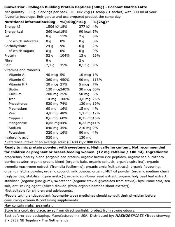 SunWarrior – Collagen Building Protein Peptides (500g) – Coconut Matcha Latte
