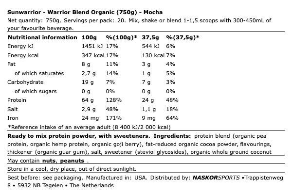 SunWarrior – Warrior Blend Organic Protein (750g) – Mocha